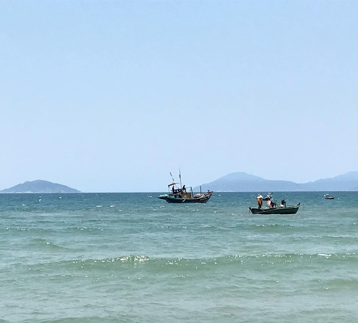 Fishermen off Tan Thanh beach with Cham Island in the background.